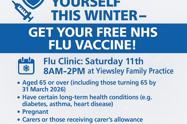 Our Flu Clinic is happening on Saturday 11th, from 8AM to 2PM at Yiewsley Family Practice.